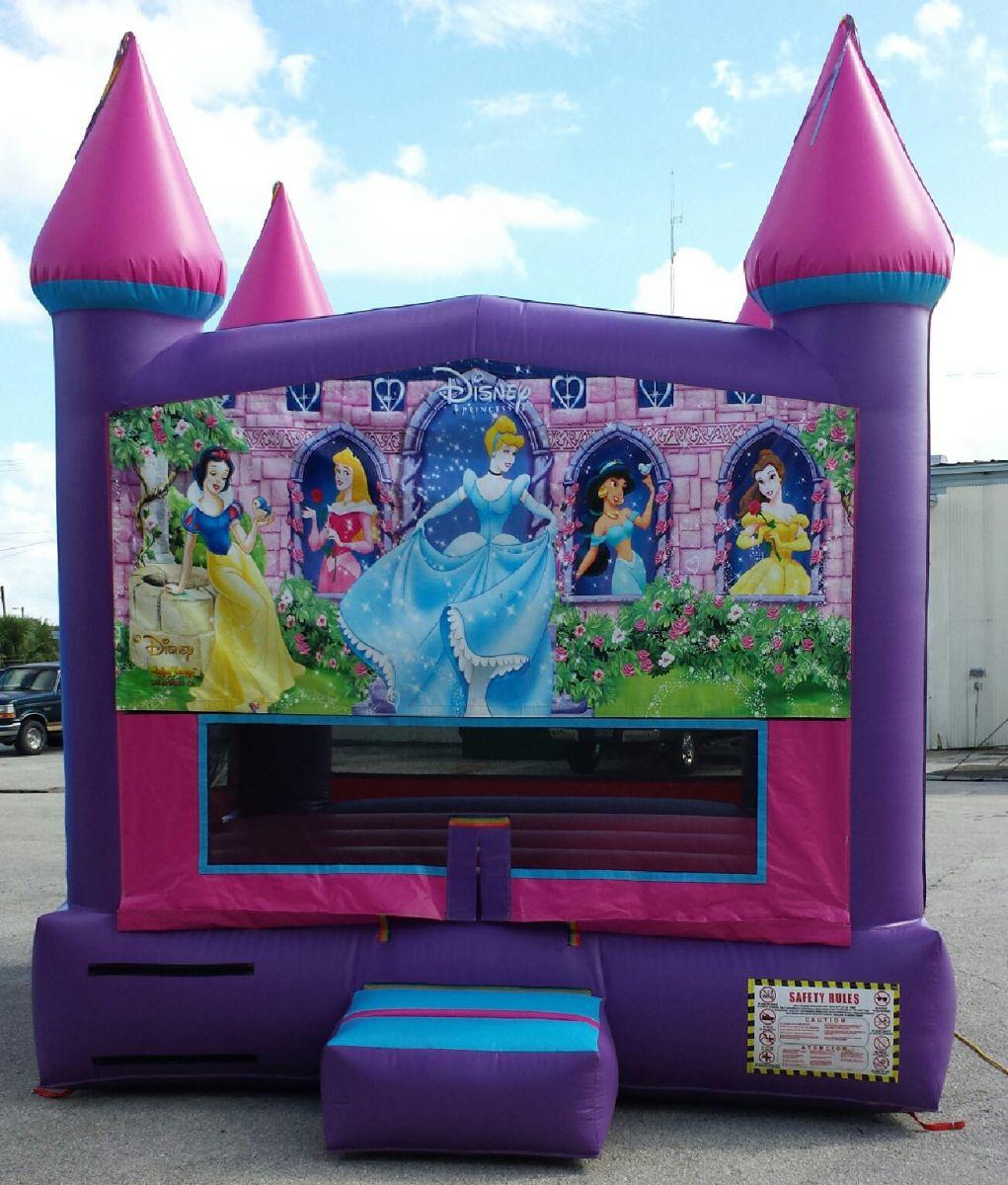 13 x 13 Pink Palace Bounce House with THE always popular Disney Princess theme, Very bright colors and has a safety step on front for ease of the jumpers entry and exit. The space required is 50 feet by 50 feet, and must be on a level surface. To rent this game, check the availability below, and then click on the date you wish to rent If game is to be delivered, please select the county where the event is held.
